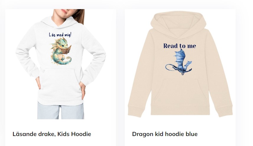 Klicka på bilden för att länkas till webshopen. I webshopen hittar du t-shirts, bodies och hoodies för barn med tryck som inspirerar till läsning. Det finns även väskor och pennskrin. Alla kläder finns med olika tryck. Organisk bomull, tillverkning i Europa. Mer info och fler produkter finns på: https://trillevipp.tpopsite.com/